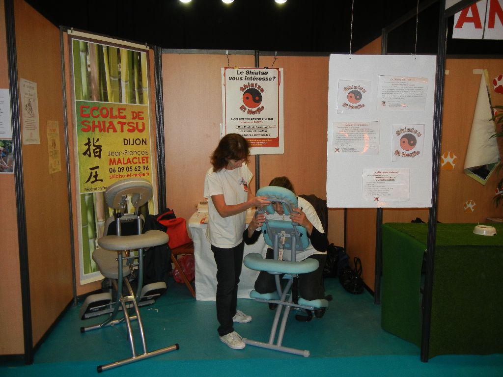 Cette année encore, l’Association Shiatsu et nerjie a participé au salon “Nature essentielle” qui a eu lieu au Zenith de Dijon les 12,13 et 14 octobre.. Des élèves de 3ème et 4ème année de l’école ont présenté le Shiatsu et ont proposé aux visiteurs un Shiatsu assis gratuit pratiqué sous le contrôle de Jean-François ; praticien FFST.