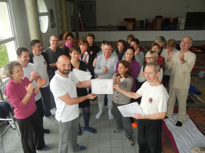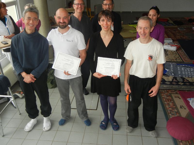 Samedi dernier, au cours du week end de formation des élèves de 3ème et 4ème année ; Jean-françois a eu l'honneur et le plaisir au nom de la FFST et en son nom en tant que professeur responsable de l'école Shiatsu et nerjie de remettre deux certificats de praticien en shiatsu FFST à deux élèves de l'école. Ces deux derniers ont réussi brillamment leur examen lors de la session de septembre à Paris.